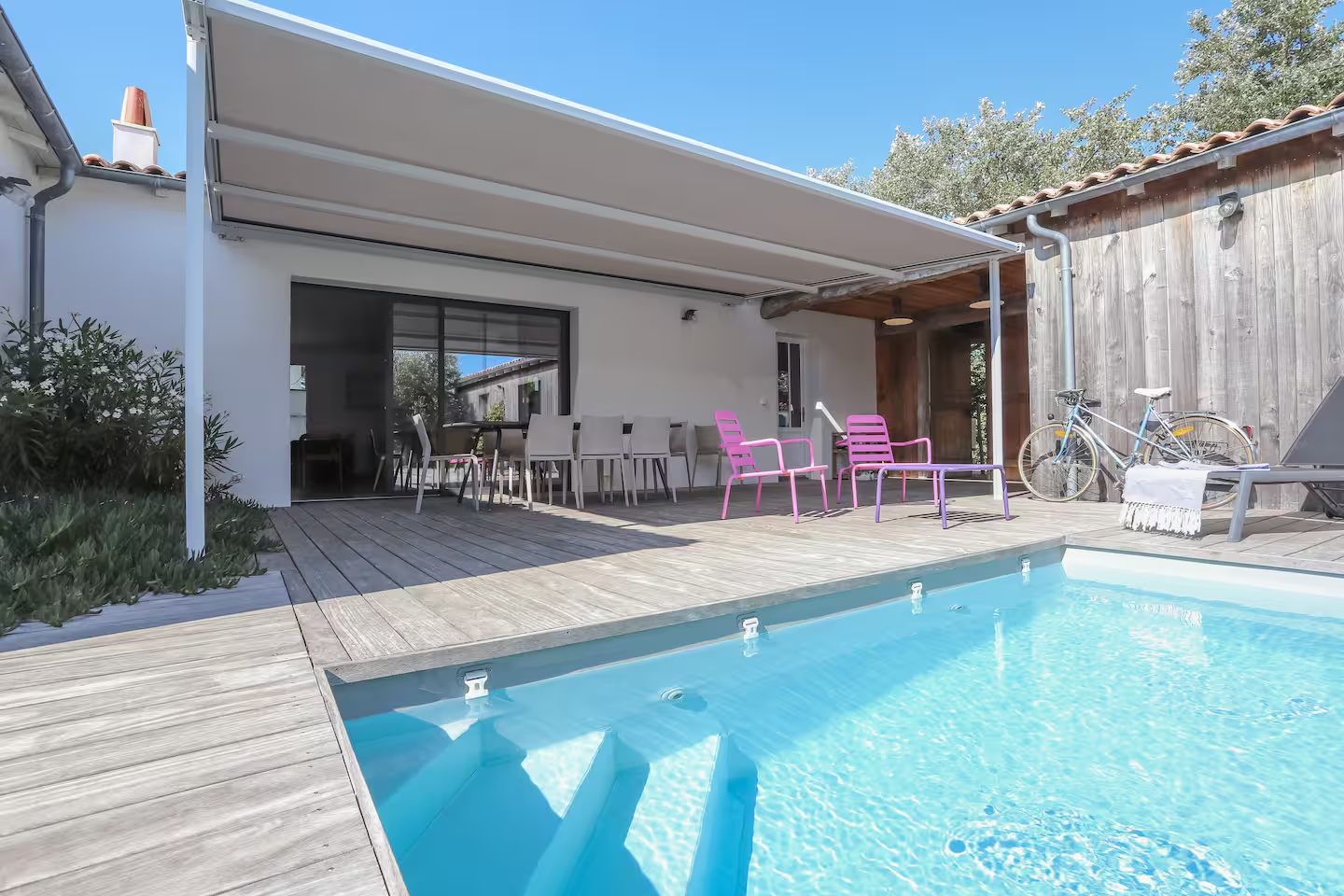 – for your naps and aperitifs, you will appreciate the beautiful terrace with its 24 m² awning (new in 2021) which extends the living room into the garden